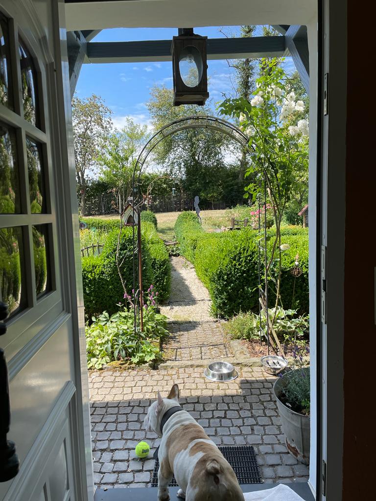 Verweilen Sie im Garten zwischen Hortensien und duftenden Rosen und nehmen sich eine Auszeit von der Hektik des Alltags. Ein großer überdachter Balkon lädt zum morgendlichen Frühstück ein.